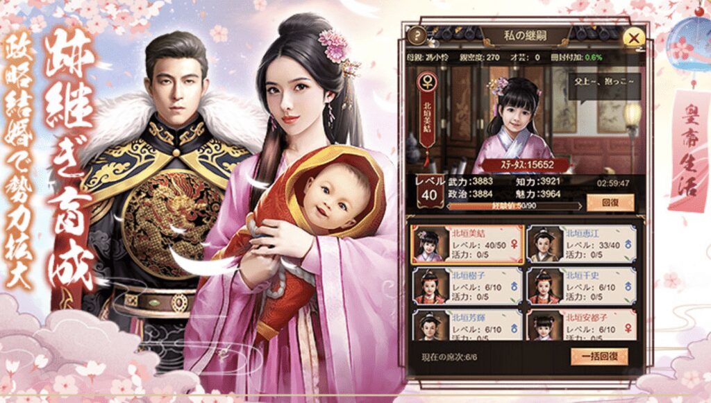 恋愛要素や子育て要素もあり、ただの戦略ゲームではないところが人気です。